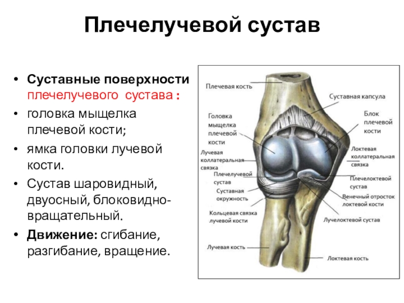 Слайд 15Плечелоктевой сустав