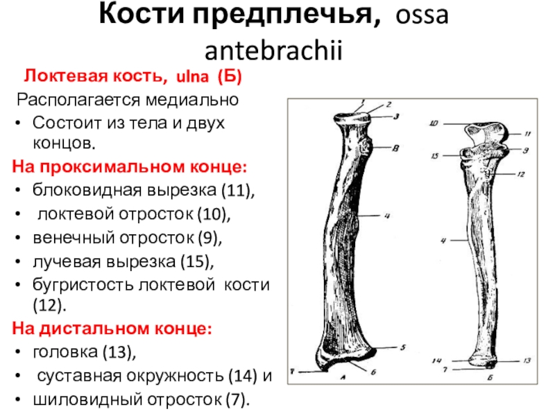 5. Опишите строение костей предплечья.