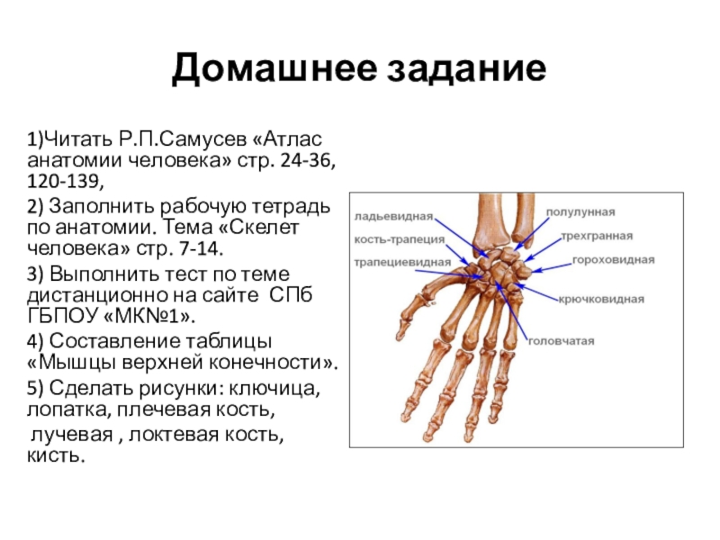1)Читать Р.П.Самусев «Атлас анатомии человека» стр. 24-36, 120-139,