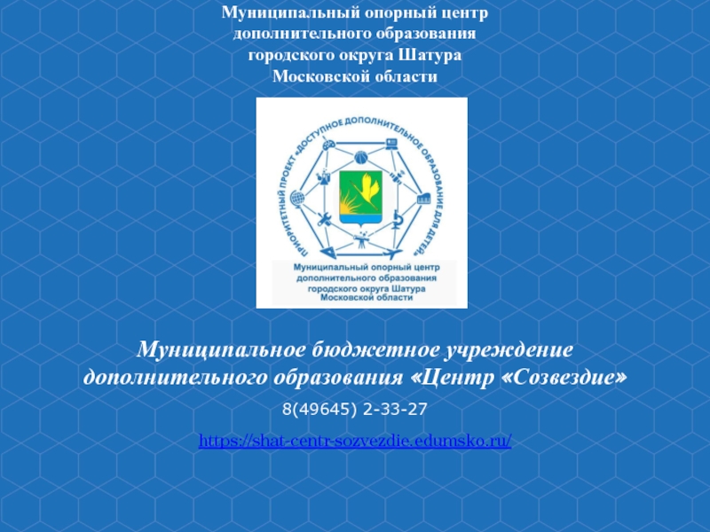 Муниципальный опорный центр дополнительного образования городского округа Шатура Московской областиМуниципальное бюджетное учреждение дополнительного образования «Центр «Созвездие»8(49645) 2-33-27https://shat-centr-sozvezdie.edumsko.ru/
