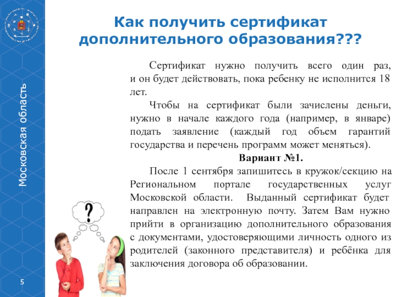Как получить сертификат дополнительного образования???Московская областьСертификат нужно получить всего один раз,  и он будет