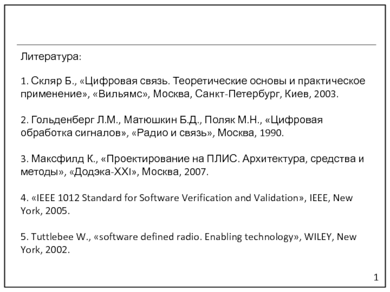 5. Tuttlebee W., «software defined radio. Enabling technology», WILEY, New York, 2002.
