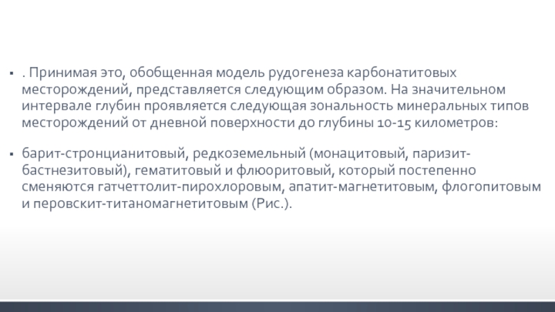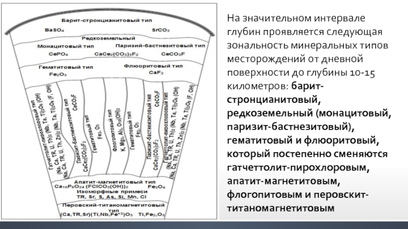 Слайд 63Вертикальная и горизонтальная зональности минеральных типов орудинения в карбонатитовых массивах