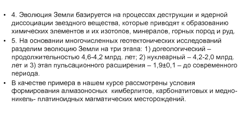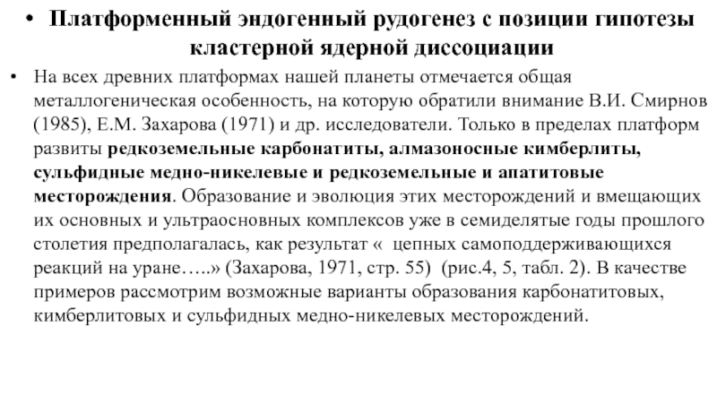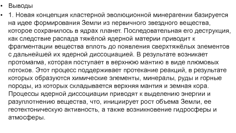 2. Геохимическая эволюция магматизма Земли и рудогенез являются необратимыми процессами кластерной ядерной диссоциации атомных ядер химических элементов, которые определяют собой единую генетическую связь тектономагматического развития земной коры и литосферы с эволюцией глубинного вещества планеты