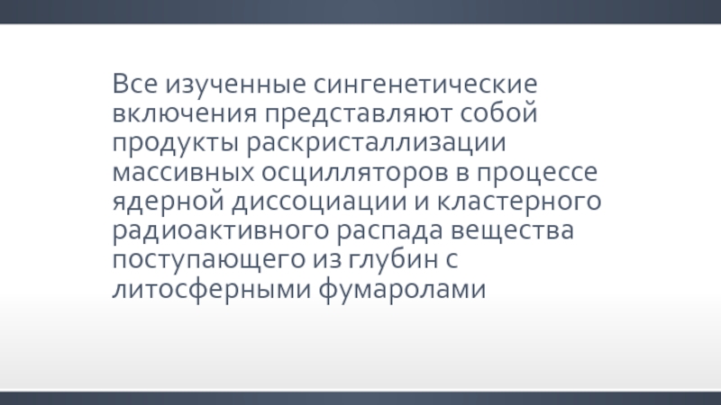 Слайд 76Все изученные сингенетические включения представляют собой продукты раскристаллизации массивных осцилляторов