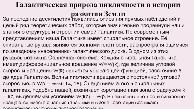 Слайд 2Галактическая природа цикличности в истории развития Земли