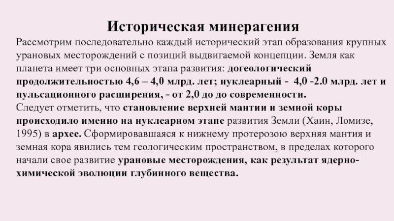 Рассмотрим последовательно каждый исторический этап образования крупных урановых