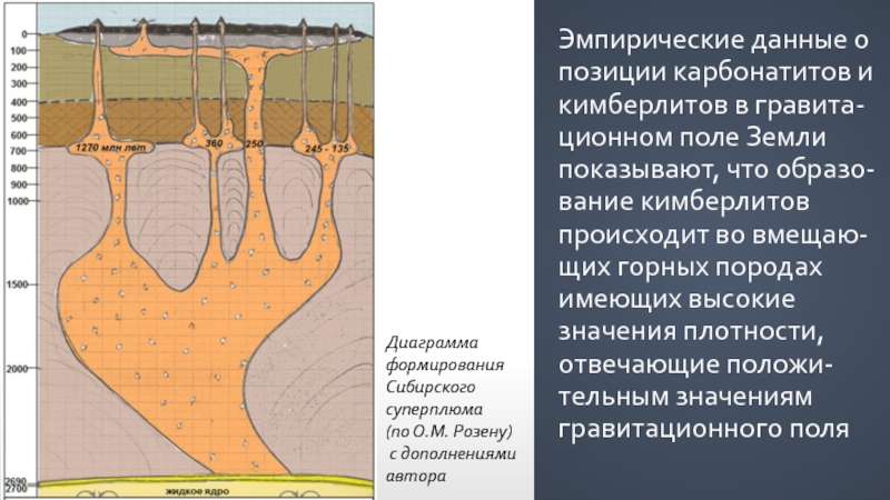 Слайд 58Эмпирические данные о позиции карбонатитов и кимберлитов в гравита-ционном поле