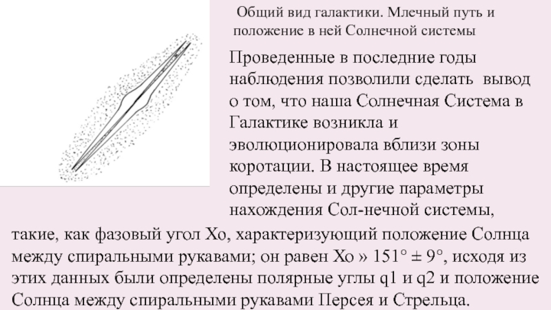 о том, что наша Солнечная Система в Галактике возникла и эволюционировала вблизи зоны коротации. В настоящее время определены и другие параметры нахождения Сол-нечной системы,