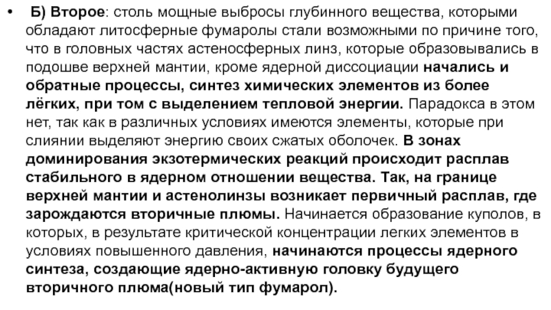 Слайд 71В результате поступления литосферных фумарол в пределы земной коры происходит