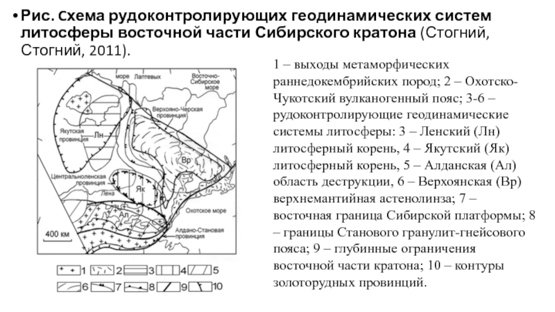 Слайд 80Рис. Cхема рудоконтролирующих геодинамических систем литосферы восточной части Сибирского кратона
