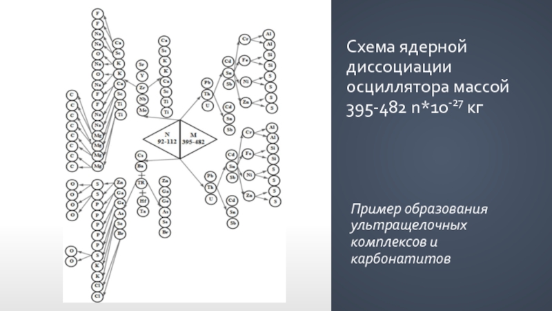 Слайд 66Схема ядерной диссоциации осцилятора массой 395-482 n*10-27 кг