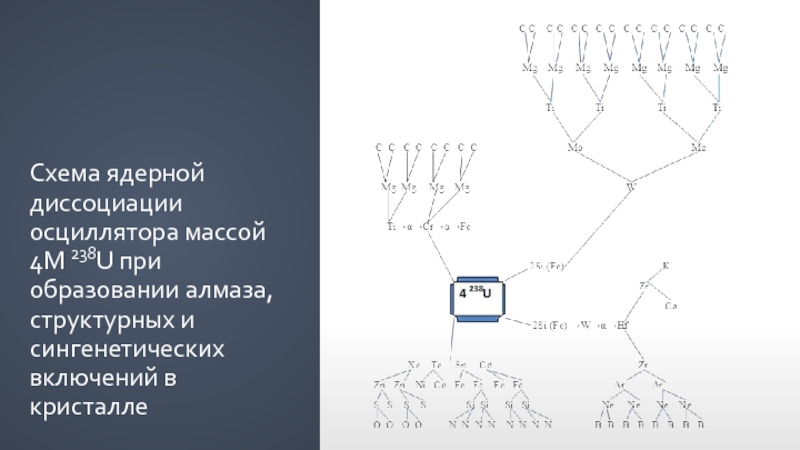 Слайд 72Схема ядерной диссоциации осциллятора массой 4M 238U при образовании алмаза,