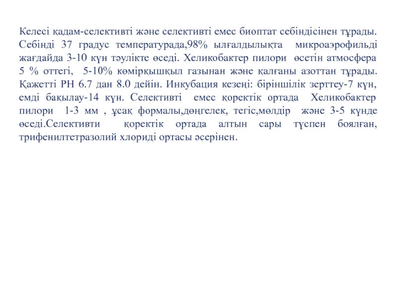 Слайд 16Келесі қадам-селективті және селективті емес биоптат себіндісінен тұрады. Себінді 37