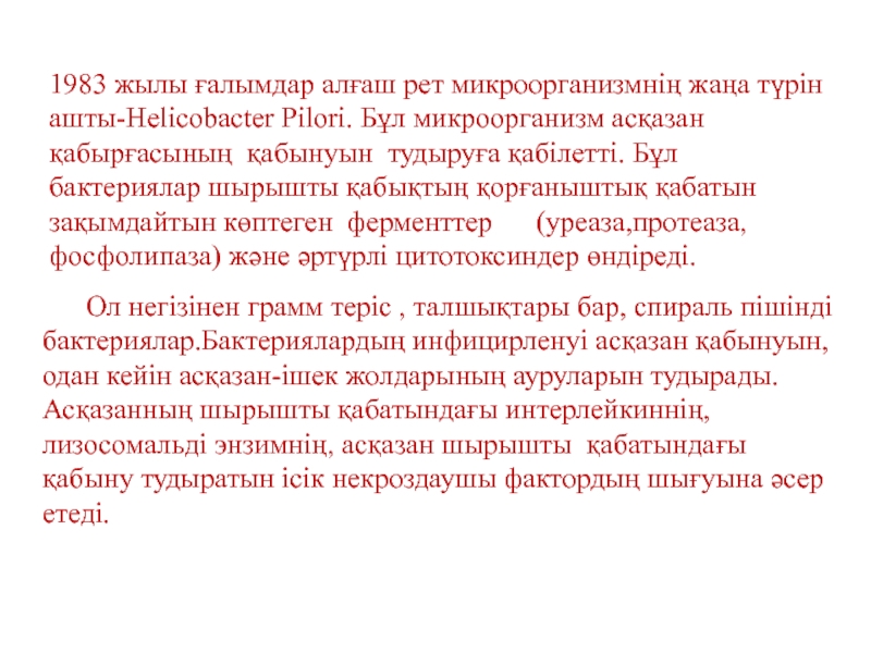 Слайд 31983 жылы ғалымдар алғаш рет микроорганизмнің жаңа түрін ашты-Helicobacter Pilori.