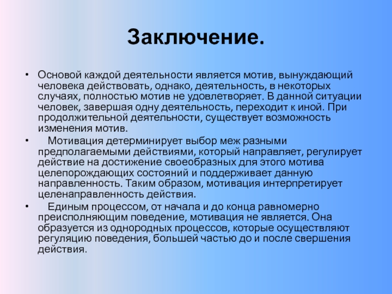 человек, завершая одну деятельность, переходит к иной. При продолжительной деятельности, существует возможность изменения мотив.
