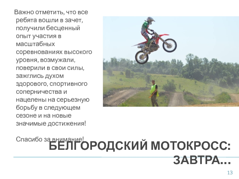 Слайд 13Белгородский мотокросс: завтра…