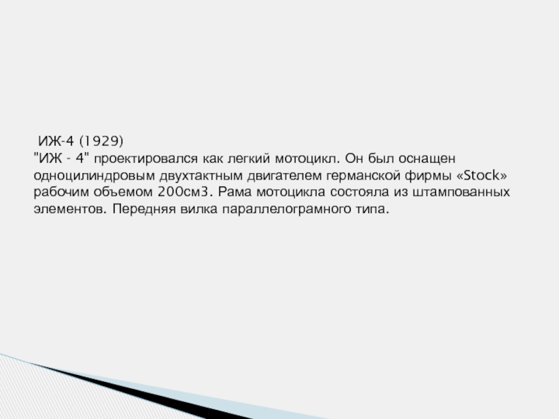 "ИЖ - 4" проектировался как легкий мотоцикл. Он