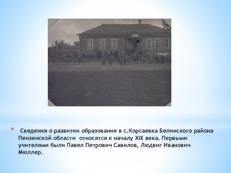 Слайд 7 Сведения о развитии образования в с.Корсаевка Белинского района Пензенской