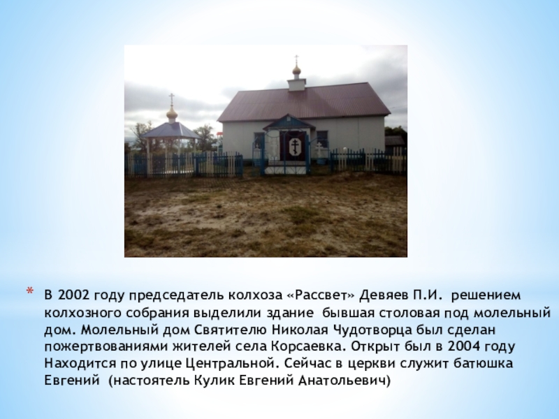 Слайд 4В 2002 году председатель колхоза «Рассвет» Девяев П.И. решением колхозного