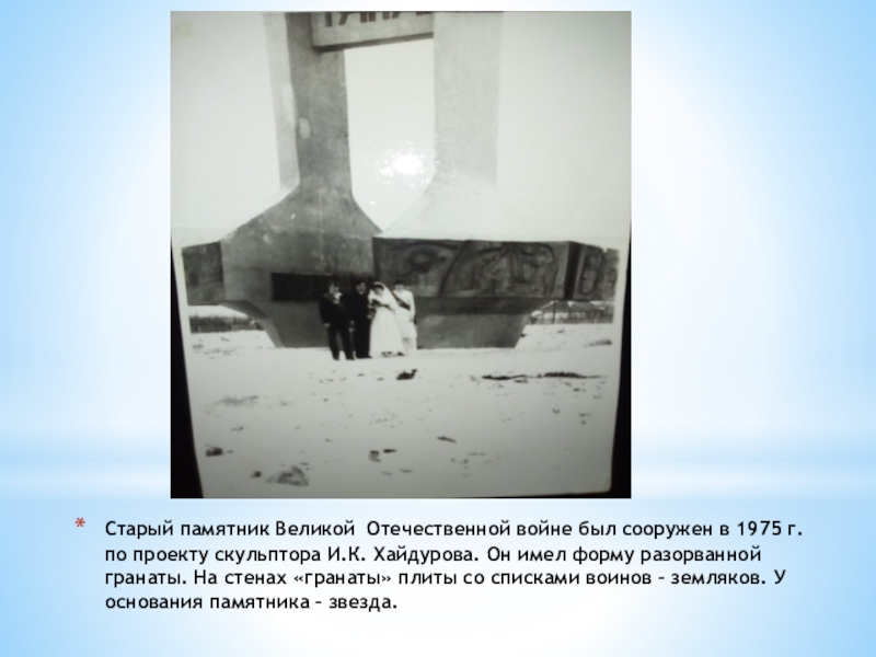 Слайд 6Старый памятник Великой Отечественной войне был сооружен в 1975 г.