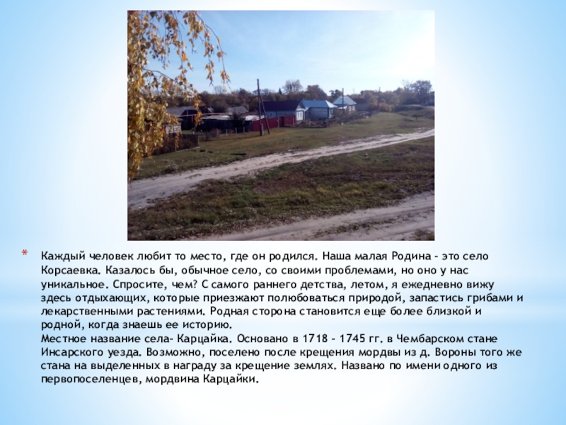 Слайд 2Каждый человек любит то место, где он родился. Наша малая