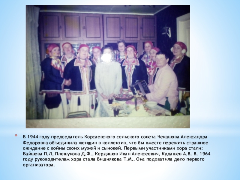 Слайд 11В 1944 году председатель Корсаевского сельского совета Чекашова Александра Федоровна