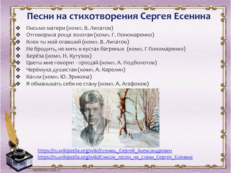 https://ru.wikipedia.org/wiki/Список_песен_на_стихи_Сергея_Есенина