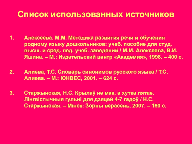 Старжынская, Н.С. Крылаў не мае, а хутка лятае. Лiнгвiстычныя гульнi для дзяцей 4-7 гадоў / Н.С. Старжынская. – Мiнск: Зорны верасень, 2007. – 160 с.