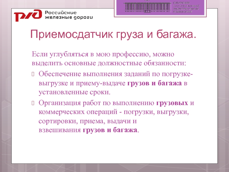 Организация работ по выполнению грузовых и коммерческих операций - погрузки, выгрузки, сортировки, приема, выдачи и взвешивания грузов и багажа.