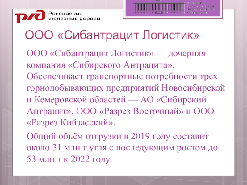 в компании ООО «Сибантрацит Логистик». Чуть позже разберем по отдельности