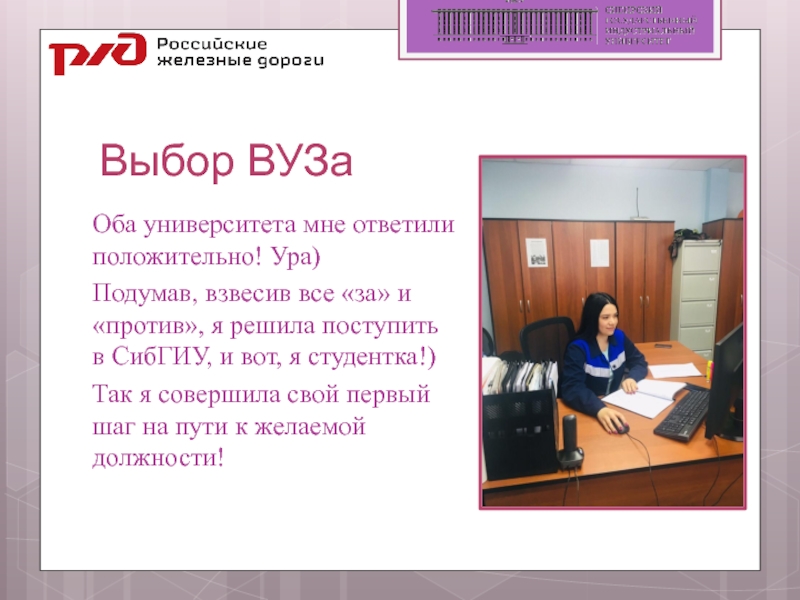 Так я совершила свой первый шаг на пути к желаемой должности!