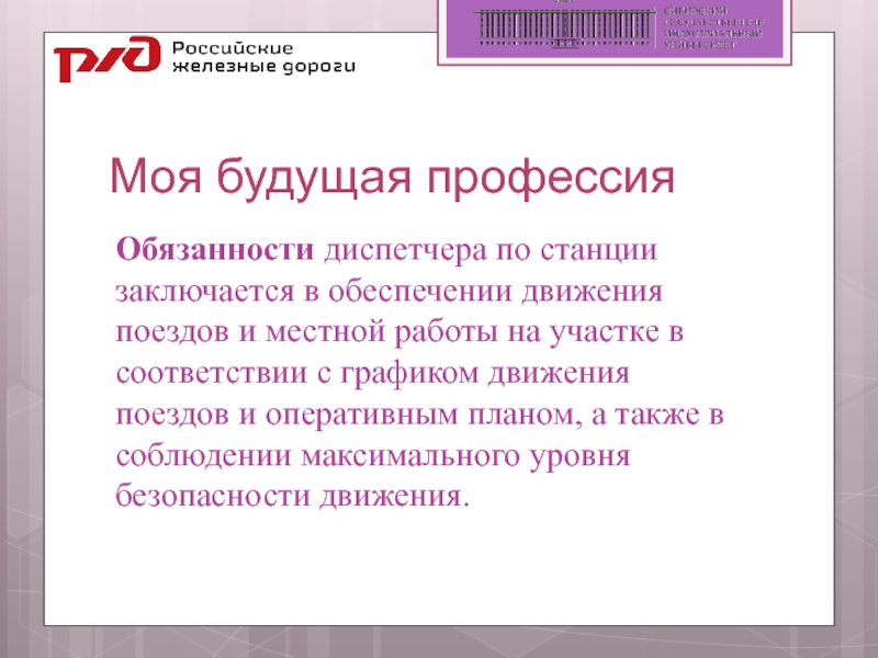 Обязанности диспетчера по станции заключается в обеспечении движения