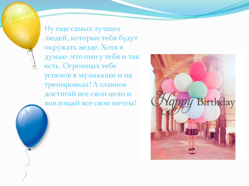 .Огромных тебе успехов в музыкалке и на тренировках! А главное достигай все свои цели и воплощай все свои мечты!