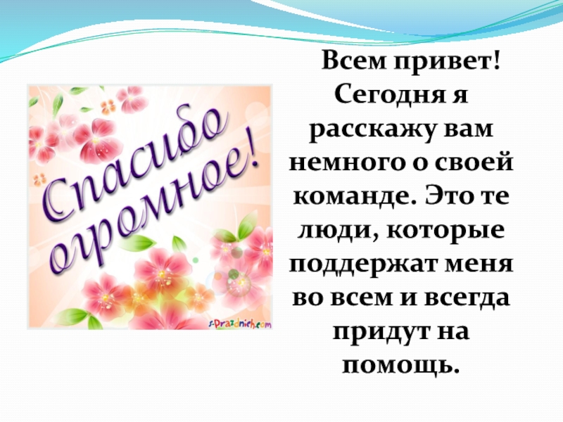 Всем привет! Сегодня я расскажу вам немного о своей команде. Это те люди, которые поддержат меня во всем и всегда придут на помощь.