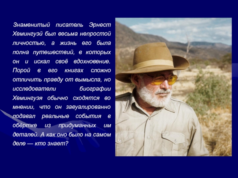 Слайд 3Знаменитый писатель Эрнест Хемингуэй был весьма непростой личностью, а жизнь