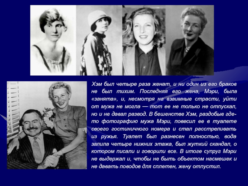 Слайд 14Хэм был четыре раза женат, и ни один из его