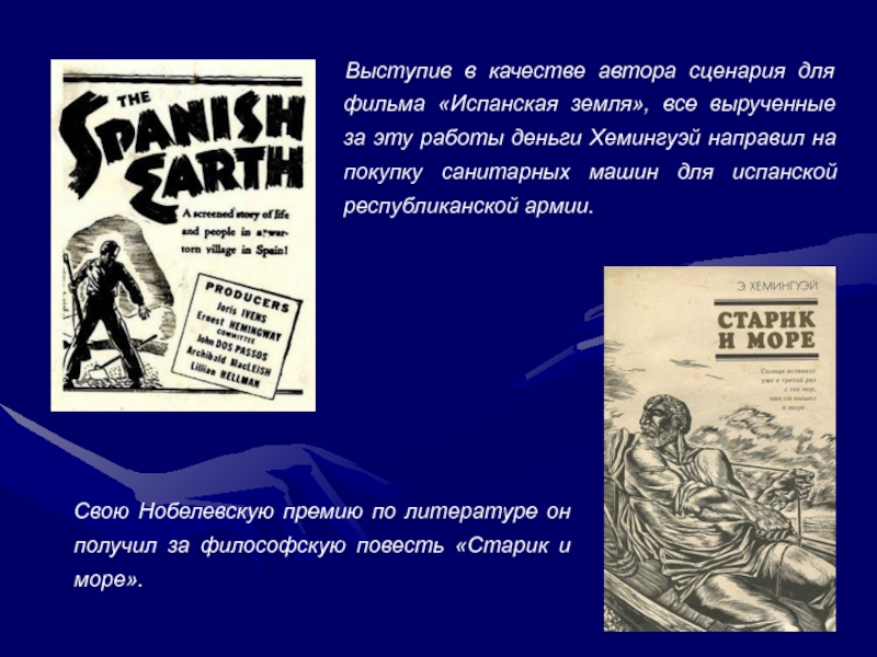 Слайд 10Выступив в качестве автора сценария для фильма «Испанская земля», все