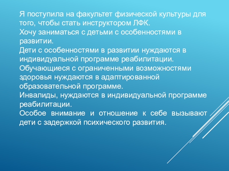 Обучающиеся с ограниченными возможностями здоровья нуждаются в адаптированной образовательной программе.