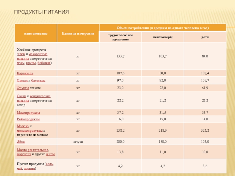 рыба, молоко и т.д. Надо отметить, что в России доля затрат именно на продукты питания в семьях очень велика и может составлять 50% и более от общих семейных расходов.