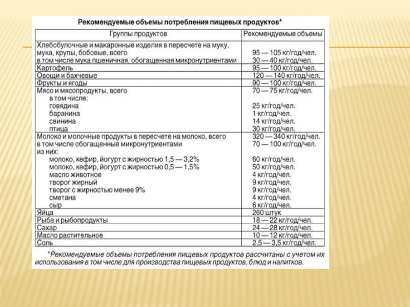 В государстве есть специальные организации, сопоставляющие и составляющие примерные таблицы норм потребления определенных продуктов людьми разных возрастных категорий