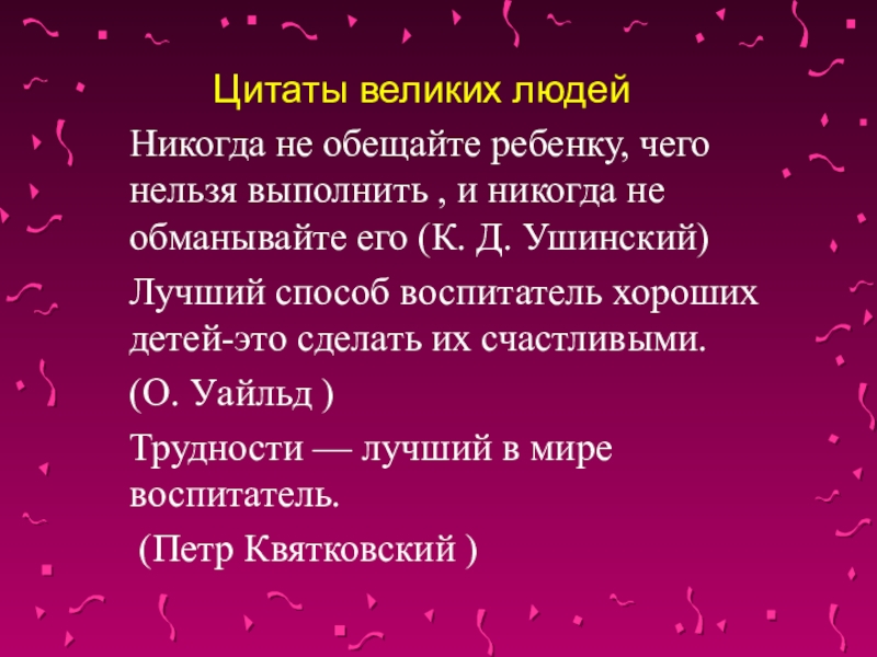 Мамы и папы доверяют нам своих крошек. В силу моей профессии заключаю, что детский сад – это не то место, где дети должны переждать время работы мамы. А дом добра и света, внимания и ласки, где нет случайных людей, дом, где учатся жить.