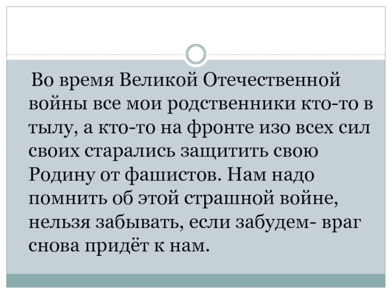 Слайд 10 Во время Великой Отечественной войны все мои родственники