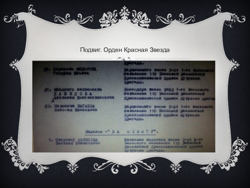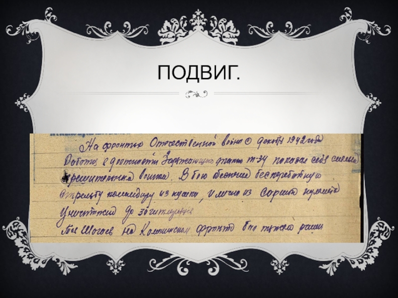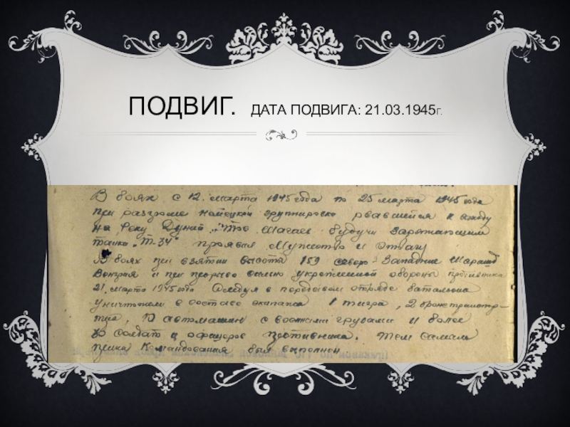 Слайд 7Подвиг. Дата подвига: 21.03.1945г.