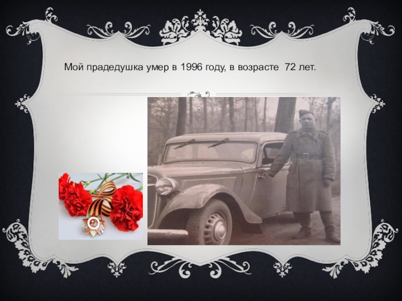 Слайд 9Мой прадедушка умер в 1996 году, в возрасте 72 лет.