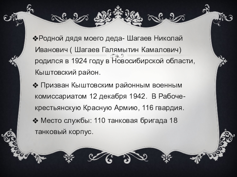 Слайд 4Родной дядя моего деда- Шагаев Николай Иванович ( Шагаев Галямытин