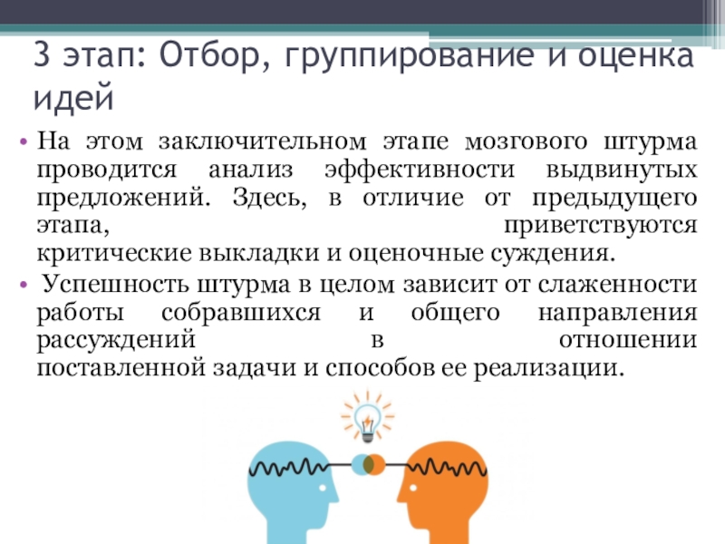 Слайд 133 этап: Отбор, группирование и оценка идей