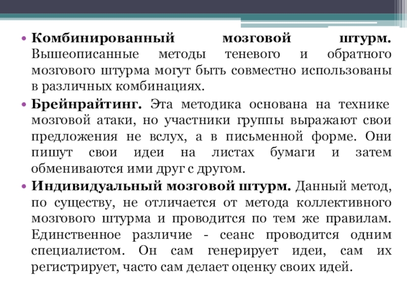 Комбинированный мозговой штурм. Вышеописанные методы теневого и обратного мозгового штурма