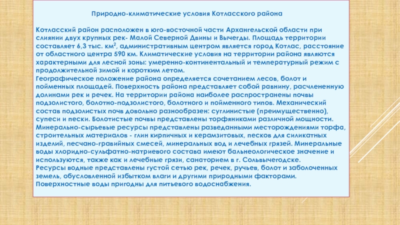 Слайд 3Котласский район приравнен к районам Крайнего Севера.
