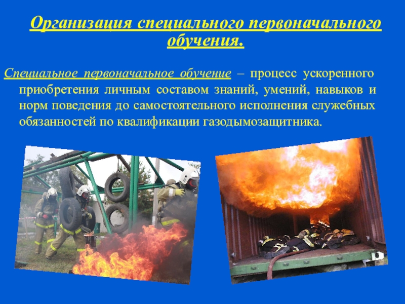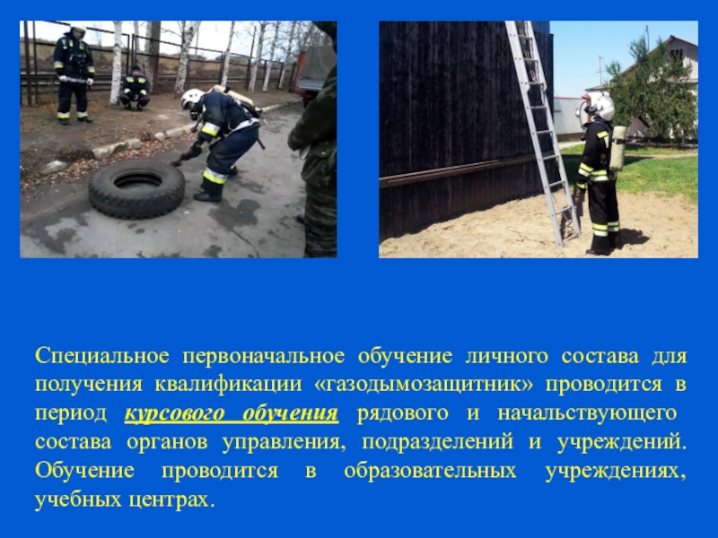 Слайд 16Специальное первоначальное обучение личного состава для получения квалификации «газодымозащитник» проводится